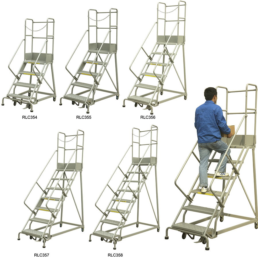 ● 優(yōu)客力配置踏板鎖定機(jī)構(gòu),踩壓底部踏板可自動(dòng)固定梯子;踩壓底部踏板下方的解除鎖定壓桿,便可輕松移動(dòng)取貨梯。
