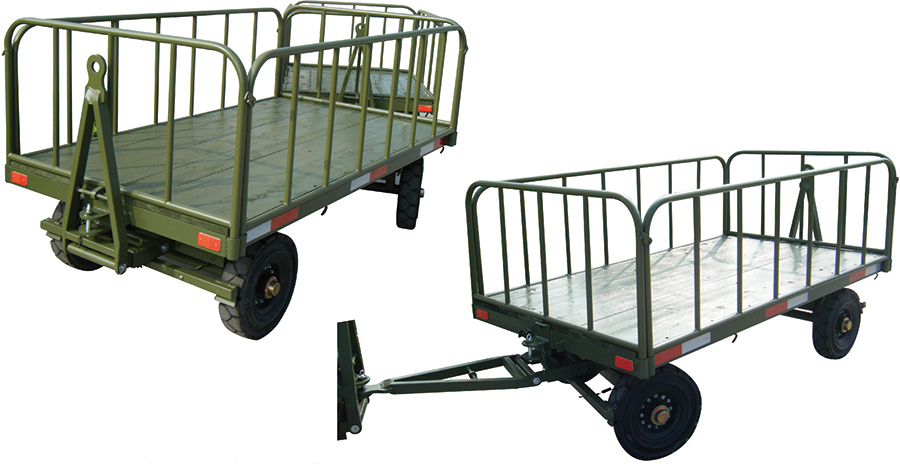 ● 采用500-8實(shí)心輪胎4只,雙轉(zhuǎn)盤轉(zhuǎn)向,可列車牽引。