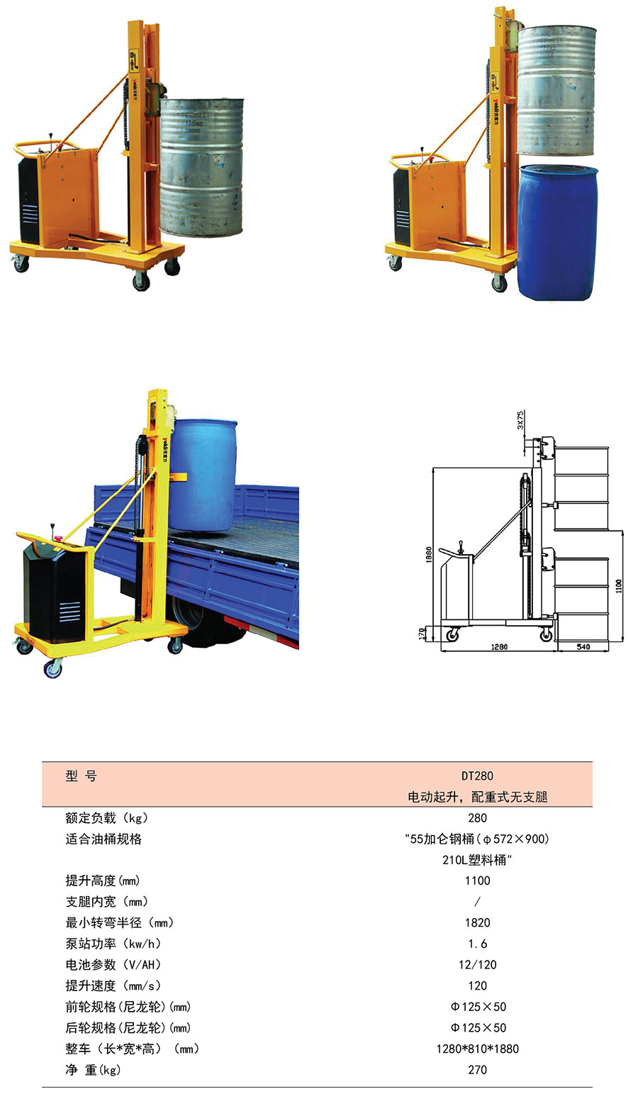 DT標(biāo)準(zhǔn)型液壓油桶搬運車