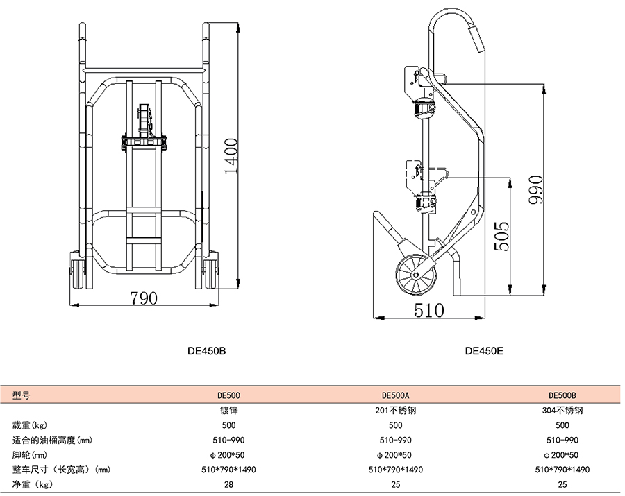 ● 鷹嘴高度可調(diào), 適用于各種不同規(guī)格的油桶的搬運(yùn)。