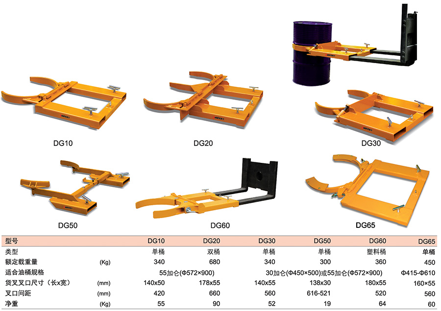 ● 叉車專用屬具,用于油桶搬運(yùn)、堆放。